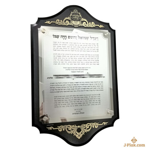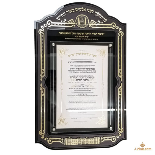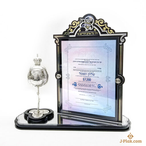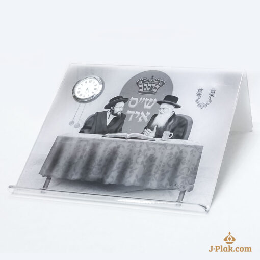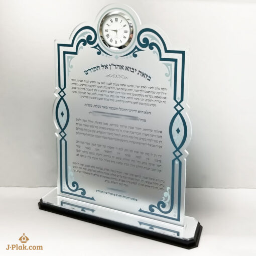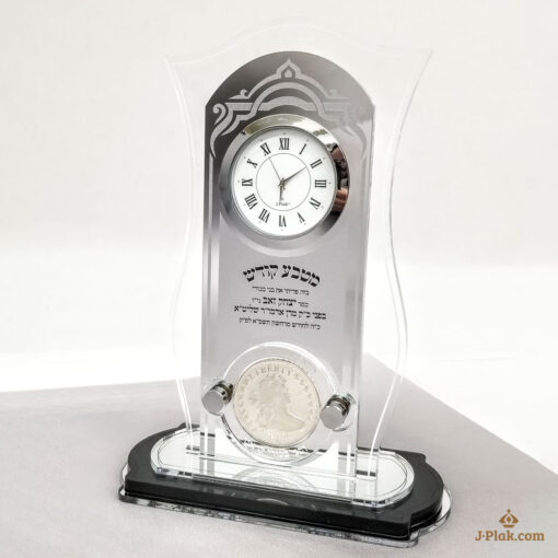 Siyum Hashas Trophy Stand Plaque with Mirror Base W/Clock – Clear+Frosted